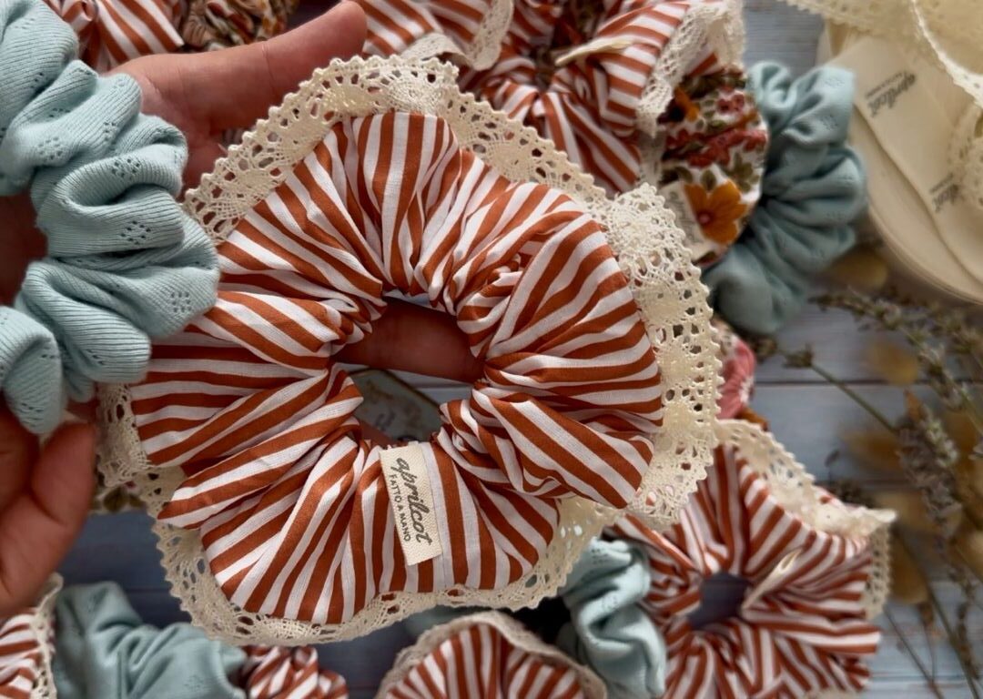 Morbido elastico per capelli realizzato in popeline di cotone Oeko Tex con passamaneria in cotone